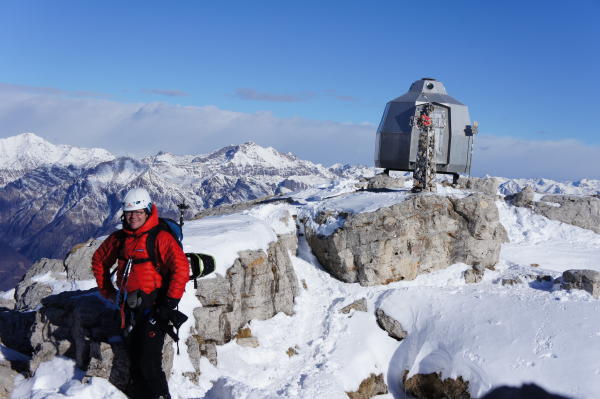 Sehr schönes Einzelzimmer und feines Essen im Berggasthaus. Der Name Rifugio erscheint mir etwas zu bescheiden. Das Rifugio Porta hatte geschlossen. Pickel und Steigeisen sinnvoll, Schneeschuhe bei den jetzigen Verhältnissen nicht zu gebrauchen.