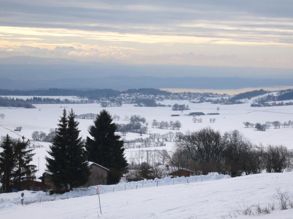 Geschlossene Schneedecke bereits auf dem gesamten Plateau de Diesse, in Schneise sehr gut eingeschneit, oberhalb des Waldes Verwehungen.