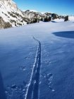 Abfahrt bis zu den Alphütten bei Oberegestele. Von dort Richtung Westen hinauf zum Gestelegrat Pt1934. Abfahrt zurück zu den Alphütten bei Oberegestele. Anfellen und Richtung Südosten hinauf auf den Buur Pt1921. Abfahrt bis Undergestele Pt1596 nach der Brücke. Anfellen und dann auf der direkt hinauf auf den Stand Pt1939.
