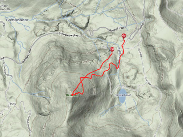 Birehubel (1850m): Normalroute ab Untere Gantischhütte