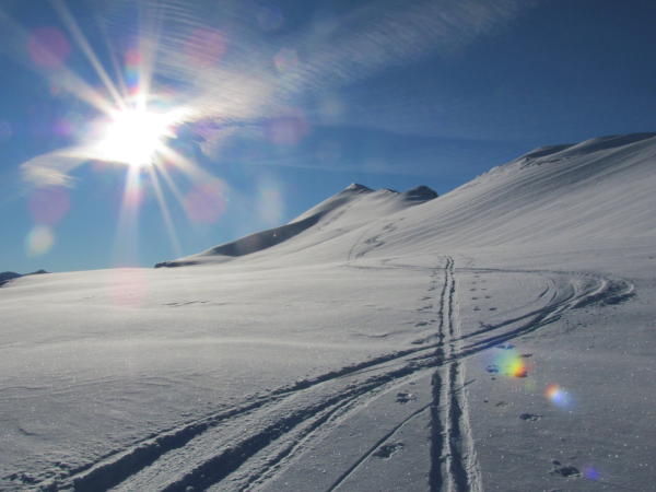 Alles bestens. Eher wenig Neuschnee auf oft tragender Unterlage. Grate oft mit tragendem Schnee.