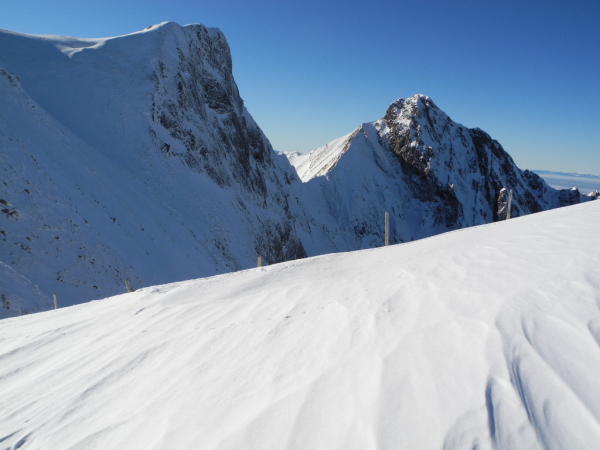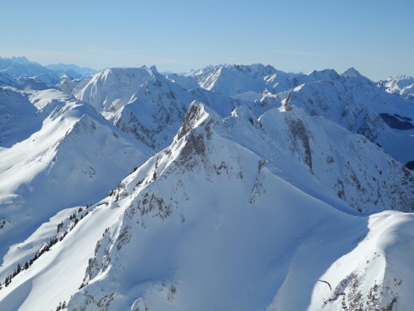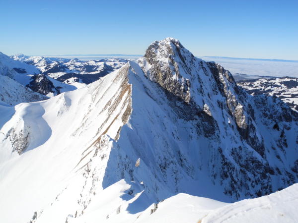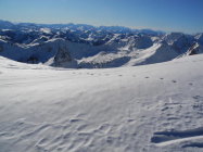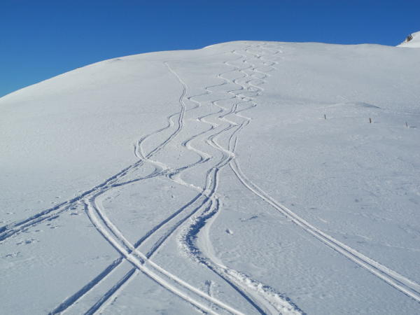 Gute Spur vorhanden bis zur Süostrippe der Bürgle(Harsteisen nicht notwendig), ab hier bis zum Vorgipfel der Gemsflue sehr Harte Verhältnisse, der Rest war Pulverschnee. Auch für den Aufstieg zur Bürglen waren die Verhältnisse sehr Hart. Bei der Abfahrt ab Morgetepass war Pulver Angesagt.