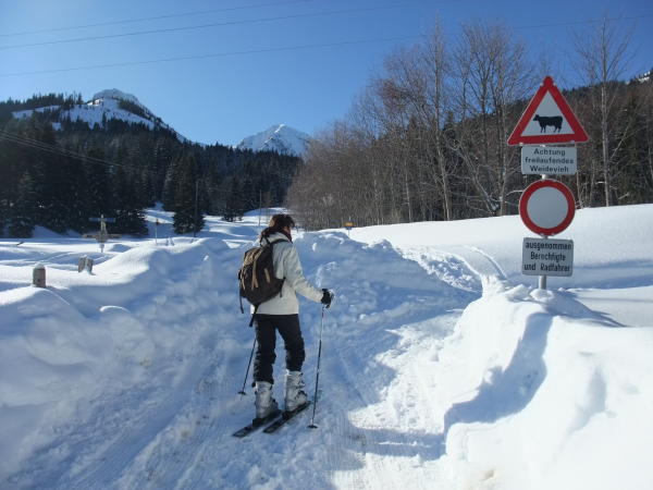 Die Schneedecke wirkt kompakt und gut verfestigt. Südseitig hat es wie im Lawinenlagebericht angegeben Gleitschneerutsche an steilen Wiesenhängen gegeben. Das Gaishorn wurde auch schon eingespurt