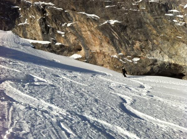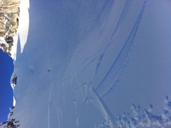 kein wirklicher Pulver mehr, erst im mittleren Teil. Schnee-Oberfläche zwischendurch ziemlich hart.
