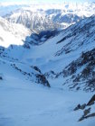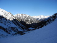 Tal gute Pistenspur 1/3,Rest tragender Deckel,gut zu Spuren,Aufsteig 1 Teil Couli mit Harsteisen(Pulfer wechselnd mit Hart),Fussaufstieg Trittschnee,oben Pulfer.