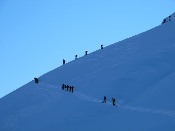 Pulverschnee mit z.T. einer leichten Harschschicht ("Glasschnee"). Gut zu fahren.