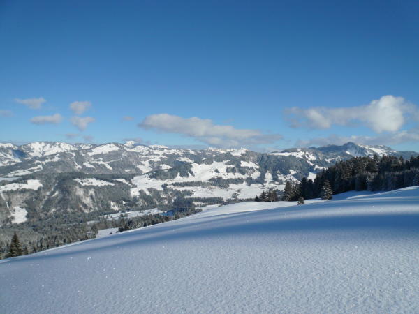 Vom Parkplatz Schetteregg ostwärts ausholend über die Obere Falzalpe, Bühlenalpe in südwestlicher Richtung zum Gipfel