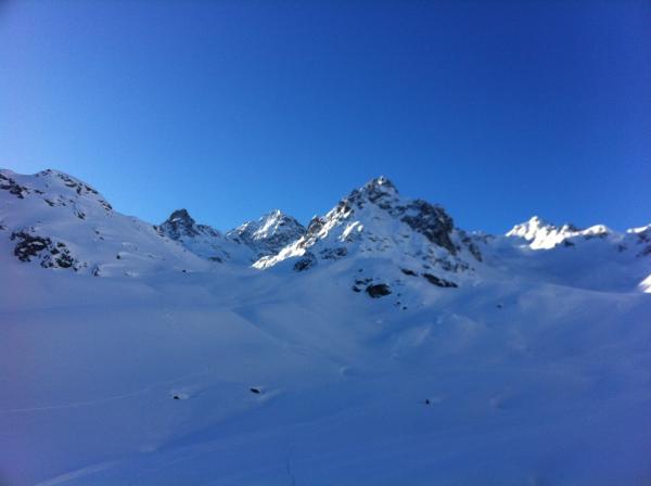 allerbester Pulver - und zwar nicht nur die gewohnt schönen Hänge oben, sondern bis hinunter nach Partenen. Eine Seltenheit...