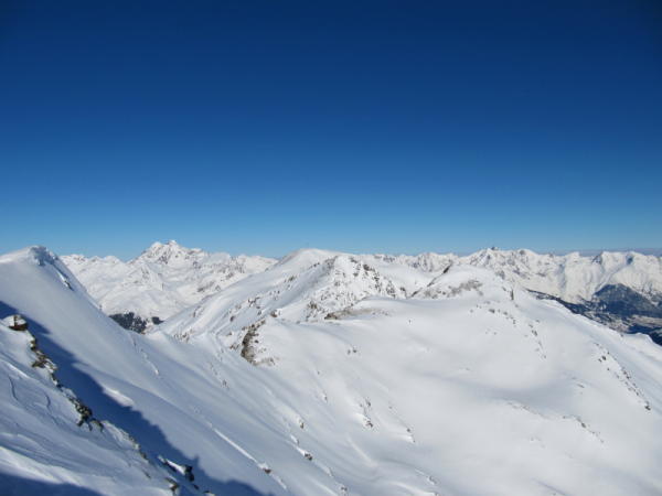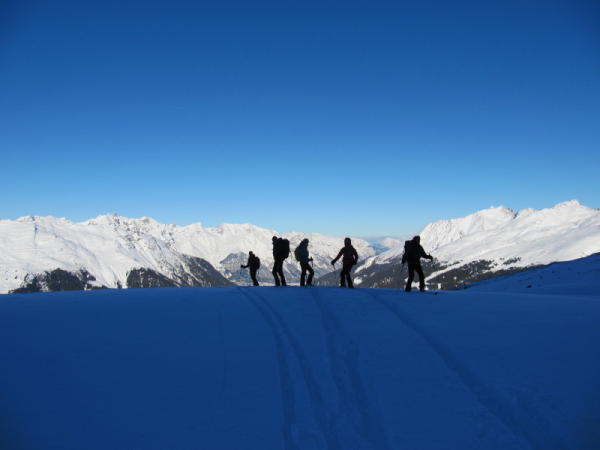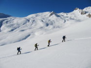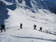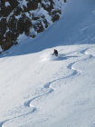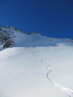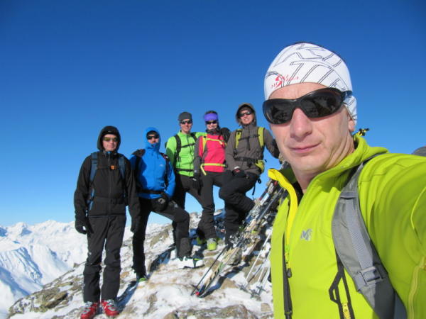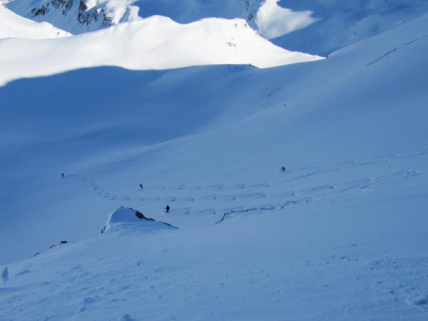 Auf der ganzen Tour sehr sichere Verhältnisse, bis auf einige wenige Stellen hatten wir einen super Pulverschnee, einige Stellen waren "abegeblasen" oder hatten einen leichten Harschdeckel.
