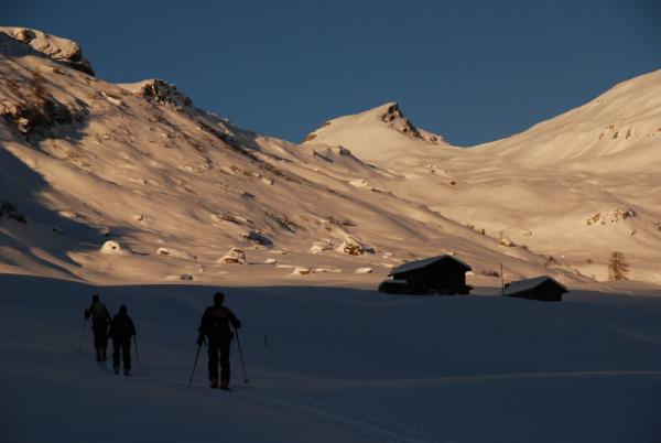 Powder, Powder, Powder... in erlesenster Qualität. Wenige Stellen etwas verblasen mit Deckel oder wenig Schnee (insbesondere unterer Teil der Gipfelflanke). Generell sehr gut eingeschneit. Wegen der vorwiegenden E/NE Exposition deutlich mehr und besserer Powder als am Einshorn von Mathon aus, welches wir am Samstag bestiegen haben. Richtung Piz Tuf lokal stark verblasen und wenig Schnee.