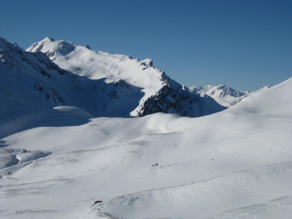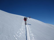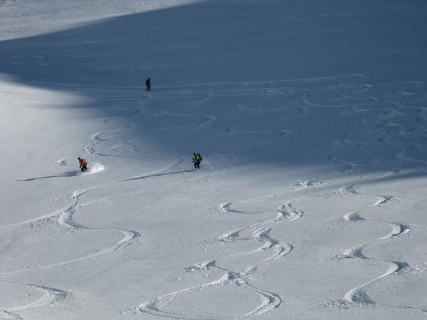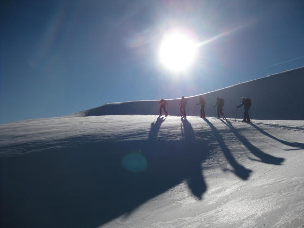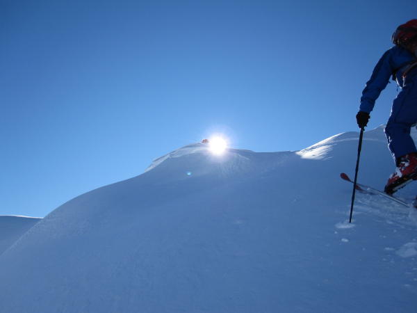 Beste Tourenverhältniss, obwohl in den N-Expo der Schnee t.w. windgepresst ist.