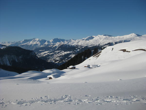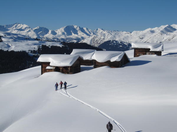 Abfahrt nach Süden, Gegenanstieg in die Schwifurga. Abfahrt nach Tjejen, Traversierung in das malerische Medergen. Abfahrt nach Norden bis Pkt. 1746. Dann zwingend nach rechts queren, um nach einer Abfahrt über offenes Waldgelände bei der Brücke auf Pkt 1642 anzugelangen. Über den Wanderweg nach Langwies.