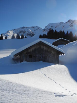 Aufstieg oben mit Harsteisen.(ev. letzdes Stück zu Fuss,weder Eisen noch Pickel nötig)).Erstes Stück Abfahrt kann auch Abgestiegen werden(ist gespurt).Ganze Abfahrt ist nur der Superpuder pur bis PW runter.Flachstück in Bergzummloch zuhinterst ist kurz hart.