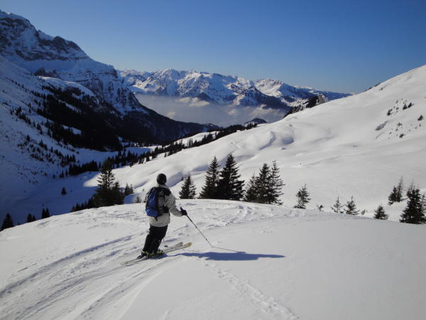 Top Verhältnisse. Oben Hartschnee. Weiter unten Pulver (nicht vom feinsten aber gut fahrbar). Von Obers Spis 1198 - Talstation Oberrickenbach wenig Schnee aber noch gut fahrbar. Mit vorsichtiger Fahrweise und etwas Glück kann man den Steinkontakt verhindern.