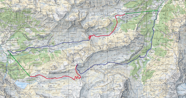 kleine Bannalper Rundtour Oberrickenbach - Seilbahn - Bannalp - Gruen Boden - Bannalper Schonegg - Kaiserstuel 2400m - Ob.Läger - Hinter Alp - Gossalp - St.Jackob - Seilbahn - Gitschenen - Sulztal - Sinsgäuer Schonegg - Haghütte - Oberrickenbach