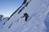 Auf der gesamten Tour gut gesetzter Megapulver vom feinsten. Die Abfahrt über die Nordflanke (ca. 38°) ist derzeit eine wahre Wonne.