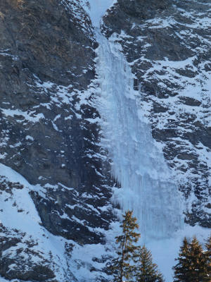 Zustieg und beide Eisfälle sind sehr stark lawinengefährdet. Sinnvollerweise nur bei geringer Lawinengefahr