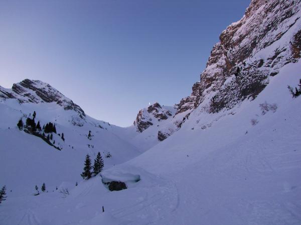 Gute zum Teil mehrere Aufstiegsspuren in Wildgrimmi vorhanden. Ev. Ab Sattel Harscheisen von Vorteil.