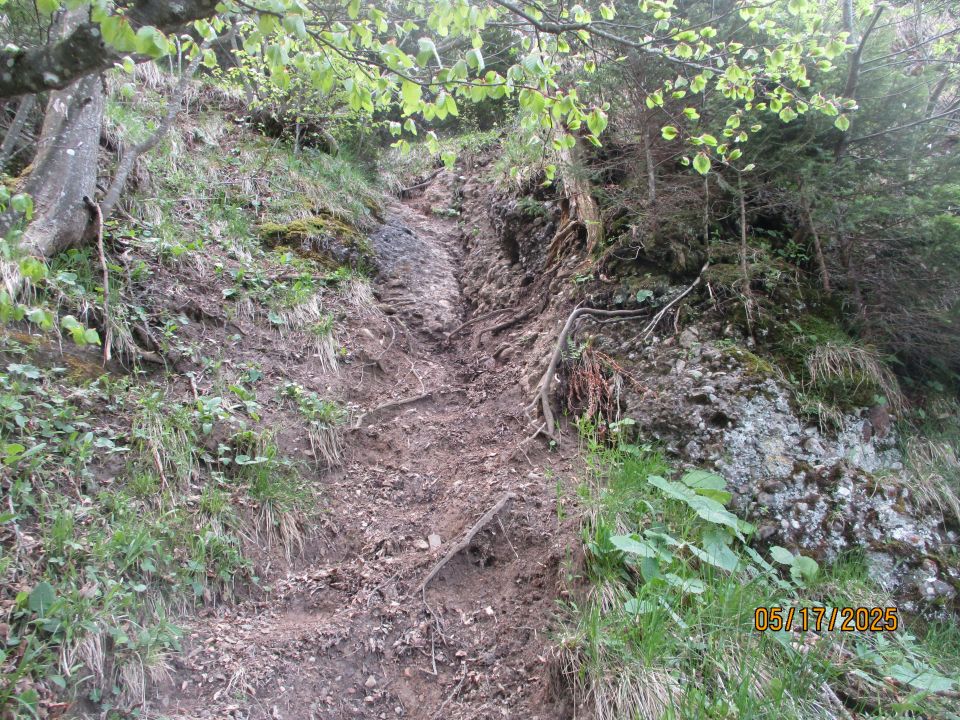 Das Hauptproblem scheint mir tatsächlich, im Aufstieg die "Mitte" zu halten, um auch wirklich auf die "Arschbaggen" zu kommen. An einem markanten, liegenden Baumstamm mit Kerbe zum Übersteigen bin ich geradeaus weiter und somit auf der rechten Variante gelandet. Scharf links und steil hinauf wäre richtig gewesen. Beim Ausstieg am Bänkle auf der Wiese (tristenboden, P. 1580) wurde ich von einem Pärchen auf meinen Fehler aufmerksam gemacht. Ich ließ es mir nicht nehmen, auf der Variante rechts zurückzusteigen (heikel, da ein derzeit noch seichter Tobel berührt wird), um dann tatsächlich doch noch durch die Arschbaggen abermals zum Bänkle aufzusteigen (Mehraufwand ca. 30 min.). Abstieg dann über die markierte Route nach Goldau.
