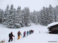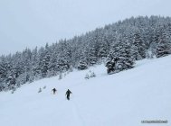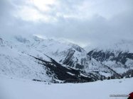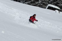 Leichter Schneefall, bedeckt. Bei der Abfahrt zwischendurch Sonne und so warm dass der Schnee rasch feucht wurde.