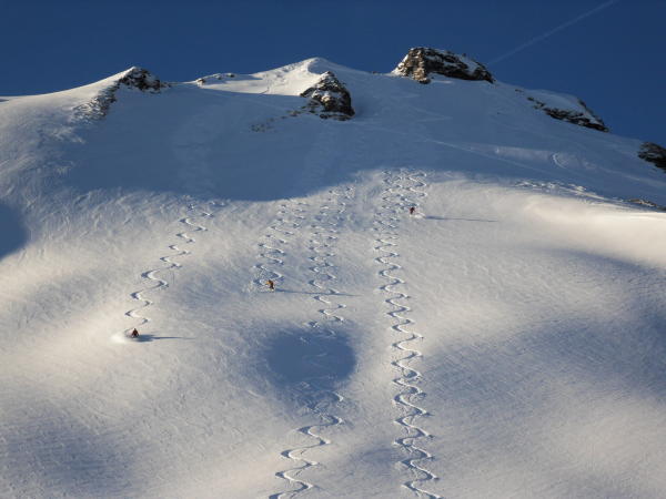 Pulver, teils etwas Windgeprägt