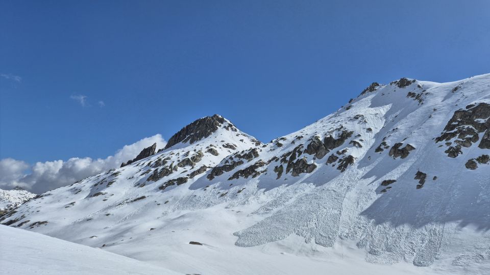 Perfekte Bedingungen. Im Aufstieg zur Vallettalücke einige alte Lawinenkegel auf guter Spur zu queren. Abfahrt Vallettalücke nach W wie immer bretthart aber griffig und sehr gut zu fahren. Die übliche steilere Rinne nach links geht gut zu fahren am rechten Rand (von oben gesehen), auch wenn Lawinenrutsche in der Rinne etwas anderes vermuten lassen.