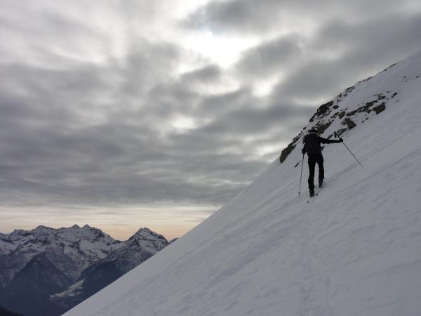 Bis zur Abzweigung Richtung Punta di Stou eine sehr unregelmässige aber ansonsten gute Spur. Danach Spurarbeit bis auf den Gipfel. Die Abfahrt der Hochspannungsleitung entlang ist im SAC-Führer recht ungenau beschrieben. Nun bietet gipfelbuch.ch den besseren Beschrieb.