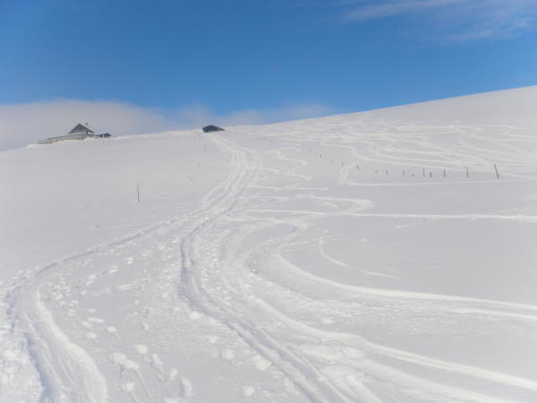 Nods-Chasseral wie immer mehr oder weniger Piste. Für die Abfahrt nach Savagniere empfiehlt es sich, nicht die Piste zu benützen sondern mehr östlich abzufahren. Retour ca. auf dem gleichen Weg. Ausreichend Schnee auf der ganzen Tour, gute Verhältnisse.