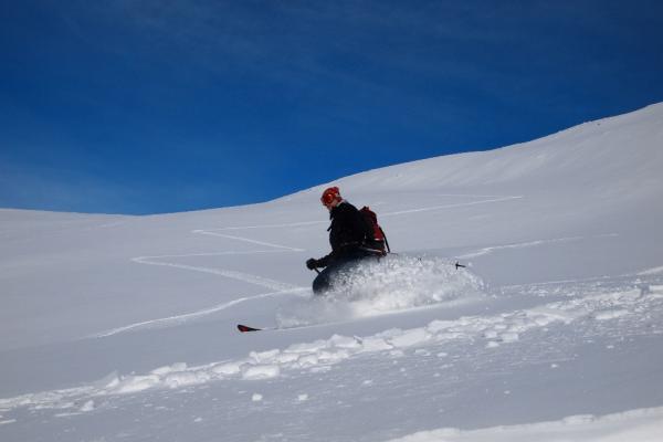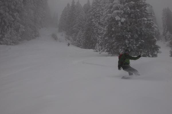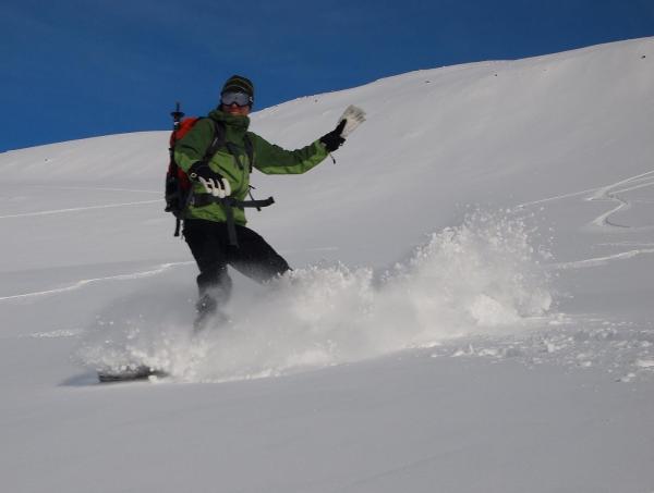 Bis 2000m im Nebel, darüber Grand beau. Pulver schon recht gut gesetzt. Oben noch Champagne-powder, unten raus schon etwas feuchter. Aber mit Board naürlich vom feinsten vo zoberscht bis zungerscht!
