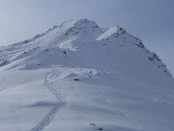 Gute Verhältnisse auf der Route Lawinengefahr beim Gipfelhang ca. 100 Hm beachten.