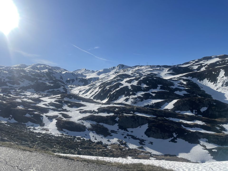 Schönstes Wetter und beste Verhältnisse heute! Ich wollte zwar an den Gotthard, aber zur Abwechslung mal nicht zur Fibbia. Das bestätigte sich auch bei der Ankunft am Pass: die ganze Strasse Richtung Fibbia/Lucendro war zugeparkt. Beim Hospiz dagegen kaum jemand. Was Skitragen so alles ausmacht… Die Tragestrecke betrug in meinem Tempo knapp 30 Minuten. Dann weiter auf griffigem Top-Firn zum Posmeda. Zwei Tourengänger gingen zum Giubin, zwei kamen hinter mir zum Posmeda. Das wars, ach ja, einen sah ich noch in der Abfahrt vom Pizzo Canariscio. Oben wunderbar angenehm, nach kurzer Pause machte ich mich an die Abfahrt, bei sagenhaften Traumbedingungen. Daher fuhr ich hinunter in die Aufstiegsroute zum Canariscio, um diesen auch noch mitzunehmen und um etwas weiter hinab abfahren zu können. Auch hier war der Firn bestens. Ein Hochgenuss. Abfahrt war denn auch weiter hinunter möglich als die Tragestrecke im Aufstieg, es blieben noch 20 Minuten zu Fuss.