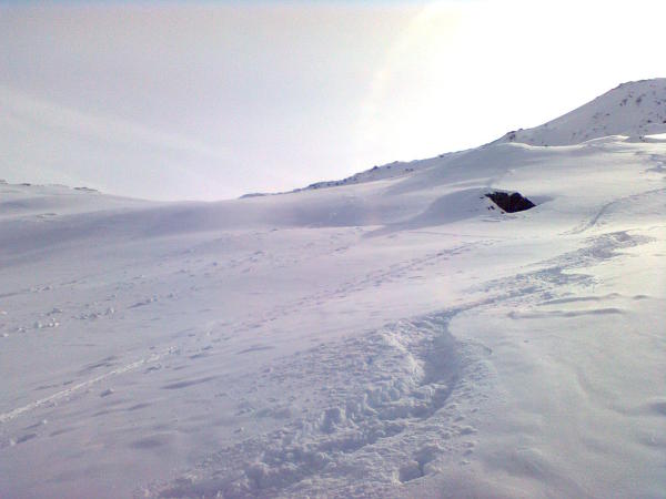 Gestrige Schneebretter im Gebiet Ob dem Stelliboden und Schijenboden.Hab noch nie in so flachen Hängen Schneebretter gesehen, welche sich auch über Flächen mit kaum Neigung noch so weit talwärts bewegten.