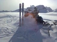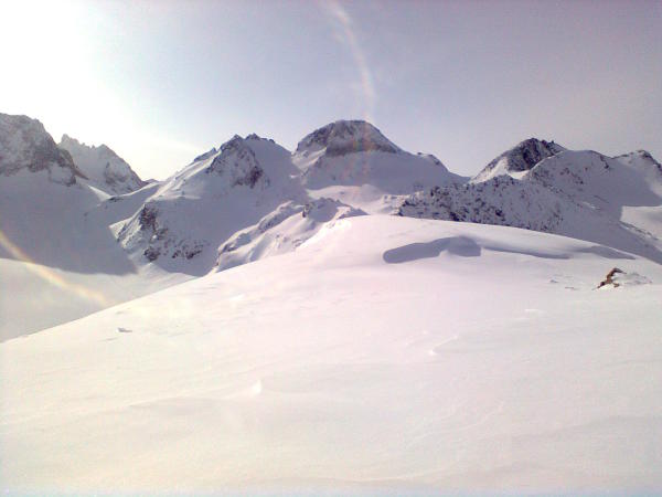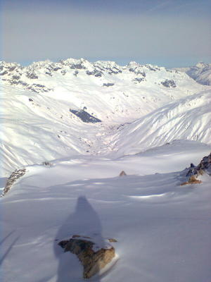 Am Tälligrat überall wumm-Geräusche und bei der Abfahrt immer wieder Rissbildung in der Schneedecke.