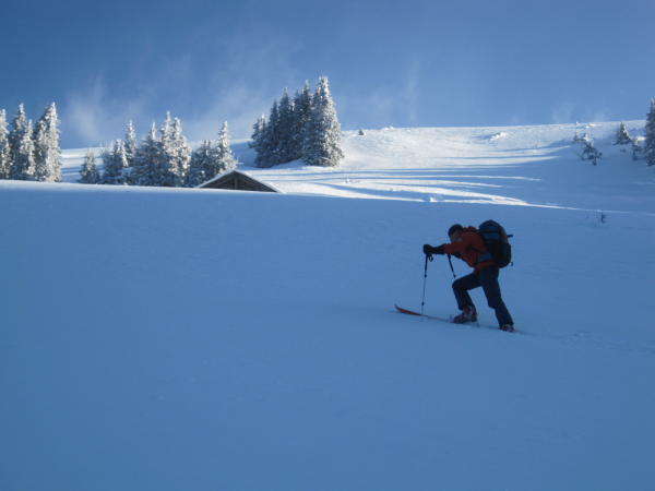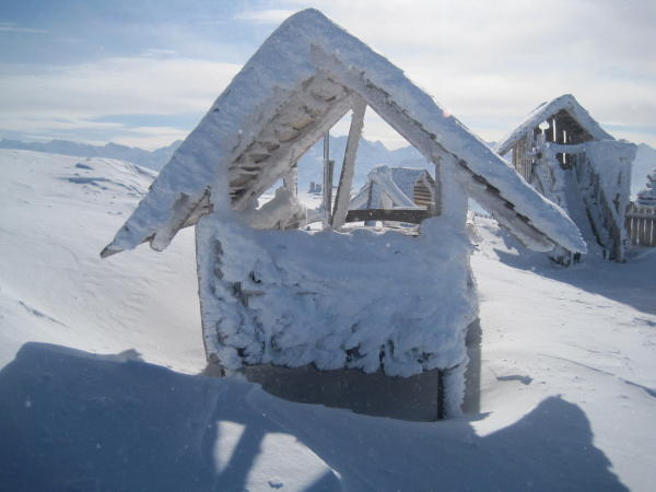 Staldenseite z.T. bester Pulverschnee und z.T. hart und abgeblasen mit Winddeckel! Infolge starker Bise sehr unterschiedliche Verhältnisse.
