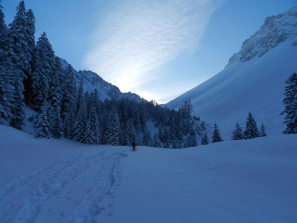 ab Totalphütte abgeblasen und viel Triebschnee in den Hängen, vor allem im Schlussanstieg von 2650m bis zur Wächte
