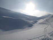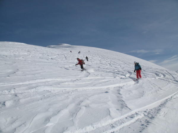 Sehr kalt (im Waldstück unterhalb -21°, auf der Grimmifurgge -37° Windchill gemessen), jedoch schneemässig Hammer Verhältnisse. Im Gipfelhang leichter Winddeckel, jedoch gut zu fahren.