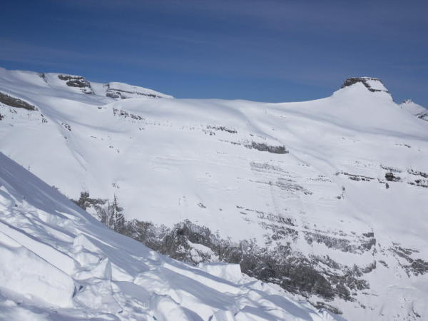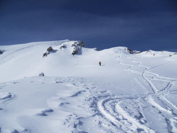 Ein spontanes und zwei kleine Schneebretter selbst ausgelöst. ( zügige Bise )