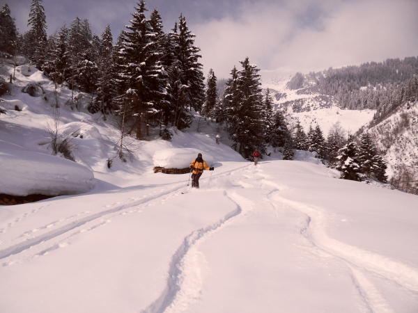 Pulver bis ca. 2300 dann Windgepresst und frischen Triebschnee