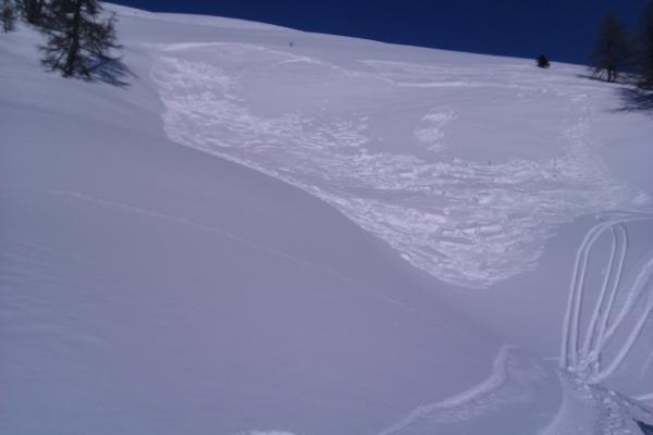 Auf jeden Fall mässig. Vorsicht bei Triebschneeansammlungen von relativ kleinem Ausmass und schon ab rund 2000 m.ü.M. Habe ein mittelgrosses Brett mit etwa 40 cm Anriss oberhalb Gand losgetreten beim Anschneiden.