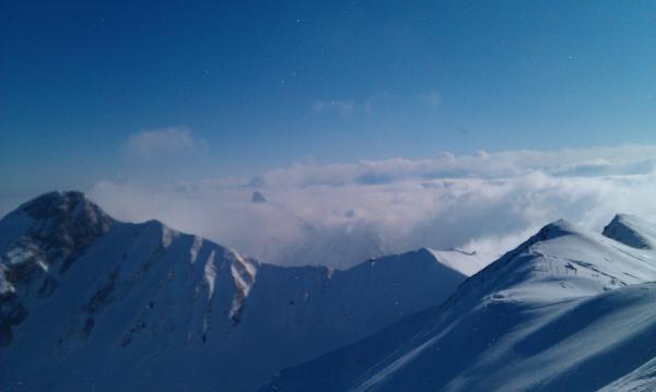 Sonniges Wetter aber eiskalte Brise und bis -18°. Aufstiegspur vor Morgetenpass eisig und ziemlich anspruchsvoll. Abfahrt bis zum Bunkercouloir komplett vereist. Das Bunkercouloir ebenfalls eisig oder voller Bruchharst.