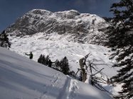Viele Gleitschneeanrisse in der Ostflanke des Firzstockes. Wir lösten in steilen Schattenhängen kleine Lockerschneelawinen aus, ca. 10 cm Oberflächenschnee ging ab.