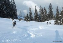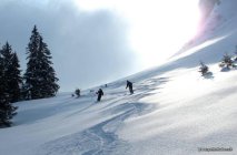 Es liegen ca. 10 cm Pulverschnee auf guter Unterlage, es hat genügend Schnee gleich von Start an.