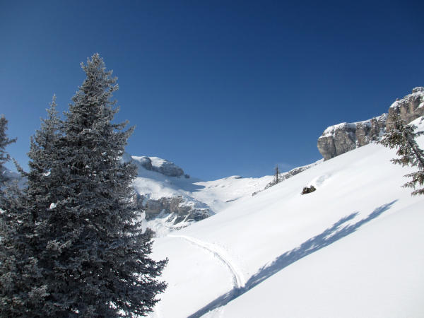 Schön und zeitweise kalt. Ca. 10 cm Pulverschnee auf guter Unterlage. In den Sonnenhängen zwischendurch ein leichte Schicht. Oberhalb des Chammhüttli recht verblasen. Dann sehr schön. Unterhalb Schönhalde recht verfahren, jedoch genügend Schnee für die Abfahrt bis zur Talstation.