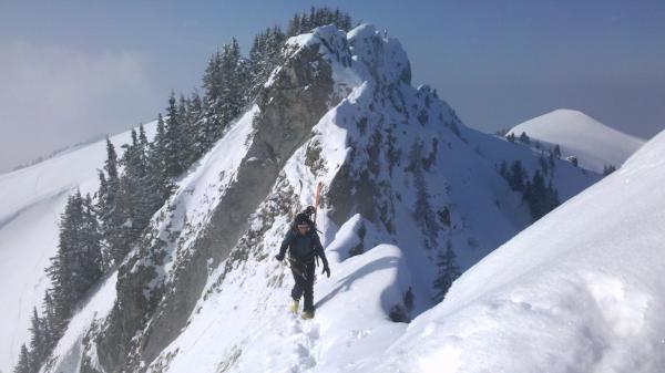 Hasenstricksteig (Alpiner Steig) perfekte Verhältnisse. Abfahrt südseitig teilweise Schmelzharschdeckel, ansonsten Pulver oder Schipiste.