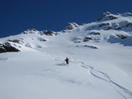 Abfahrt Ri. Murgsee: schwerer Pulver. Vom Murgsee Aufstieg zum Bützistock. Abfahrt retour Pulver vom Feinsten. Über Widersteiner Furggel zurück nach Engi.
