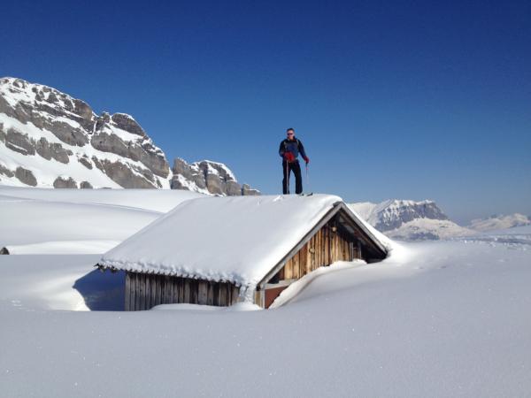 Beim Aufstieg durch das Couloir ist eine gute Skitechnik erforderlich.