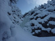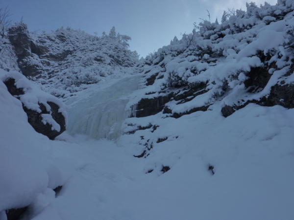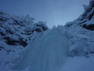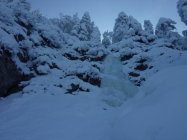 Schnee gar nicht so tief wie erwartet, braucgbare Eisverhälnisse von spröde bis Softeis. Minimale Felsberührung aber kein Probelm bei den Ausstiegen