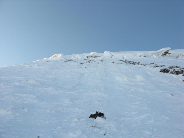 schöner pulver, gute spuren der schneeschüehler, durch die ostflanke eine aufstiegsspur gefunden, da sieht es zum teil aus wie auf einem verspaltenen gletscher vor lauter fischmäulern. durch das ostcouli tragender deckel, danach zauberpulver bis runter. starker wind am gipfel.