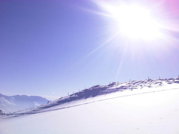 Starker Wind auf dem Gipfel. Kalt! Schnee etwas windgepresst unter dem Gipfel. Unten tipp topp.