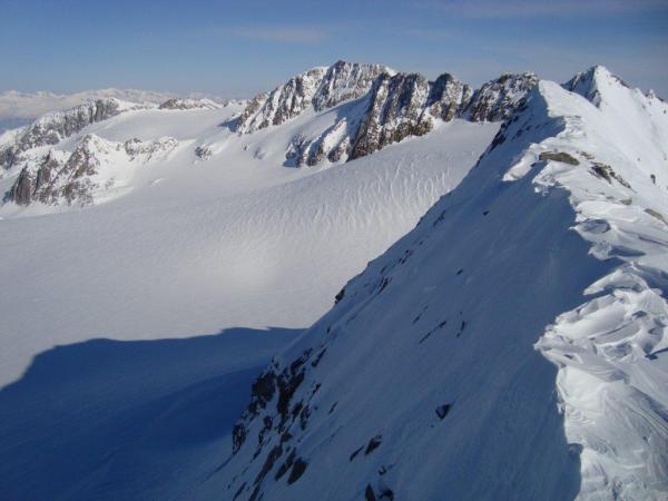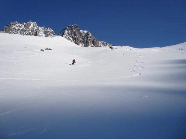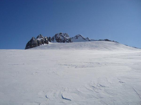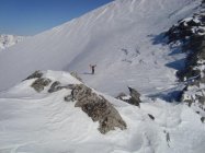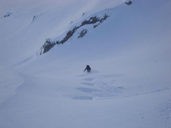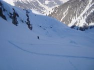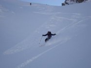 Bis Alp Puzzetta Sut war gespurt.Ab da mussten wir selber ran. Waren positiv überrascht, wie gut wir bei diesen Temperaturen vorankamen. Der Gletscher war wie zu erwarten Windgepresst und übel, wenn nicht sogar teilweise gefährlich zu fahren,da wechsel von Pulver zu Bruchharscht und Beton in der Abfahrt nicht immer früh genug erkannt wurde. Über die Südseite des Cristallina muss ich wohl nicht's sagen, lohnt sich einfach nicht. Besser über die harte Nordwand abfahren, spart Zeit und macht mehr Spass, als mühsam zurück zu P.3003 traversieren. Ab ca.2400m bis runter nach Fuorns einfach nur Pulver gut. Schön wars!